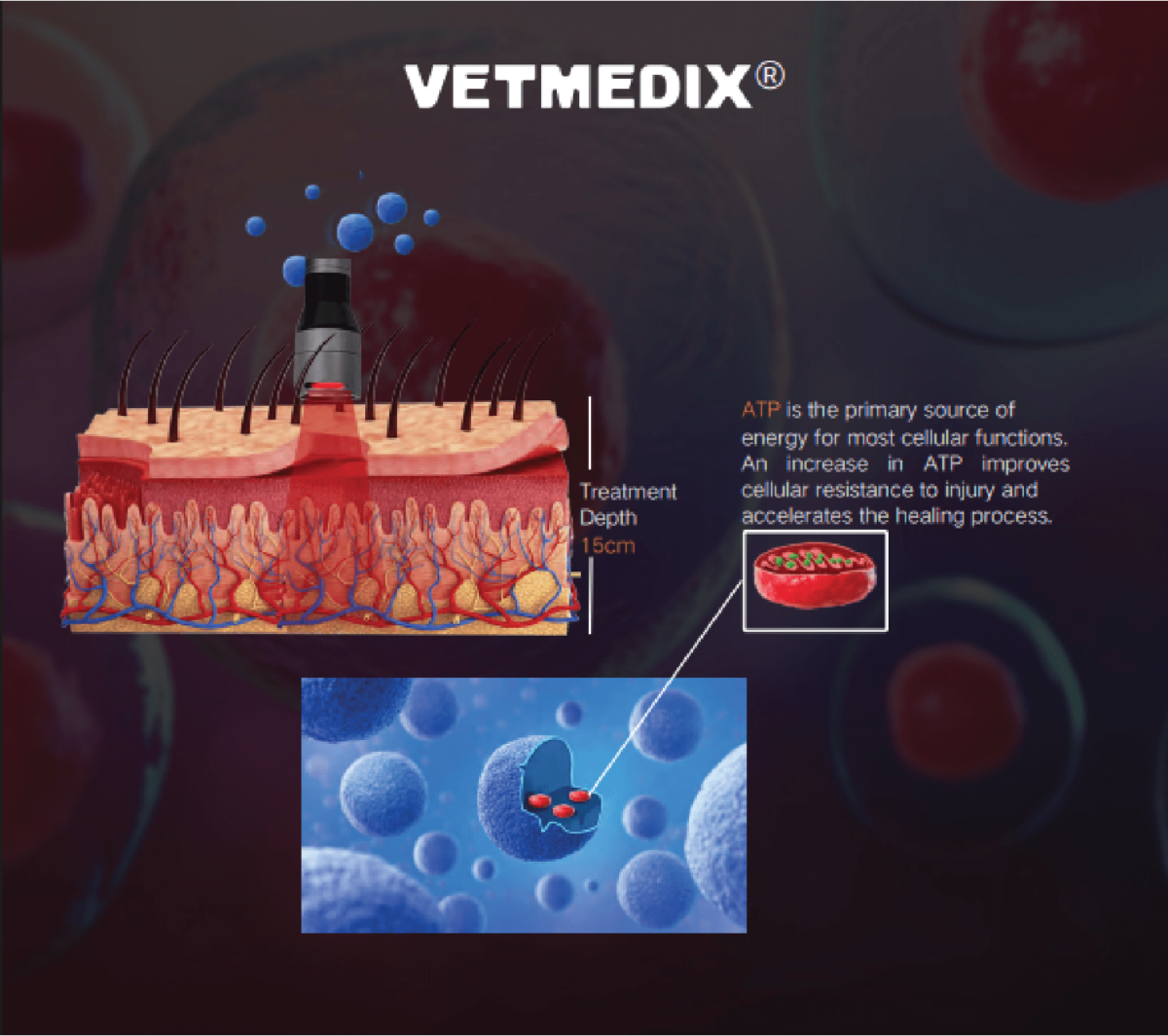 - Photobiomodulation (PBM) in Action. By stimulating mitochondria, VetMedix and LaserMedix Max boosts ATP production, reduces inflammation, relieves pain, and speeds healing — all through non-invasive light therapy.